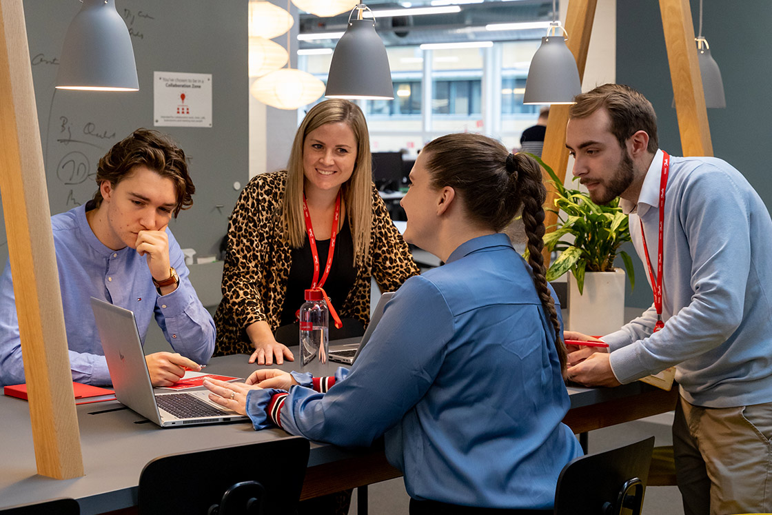 Kontorelever hos Danfoss indgår i et stærkt fællesskab, hvor faglighed, udviklingsmuligheder og trivsel vægtes højt.