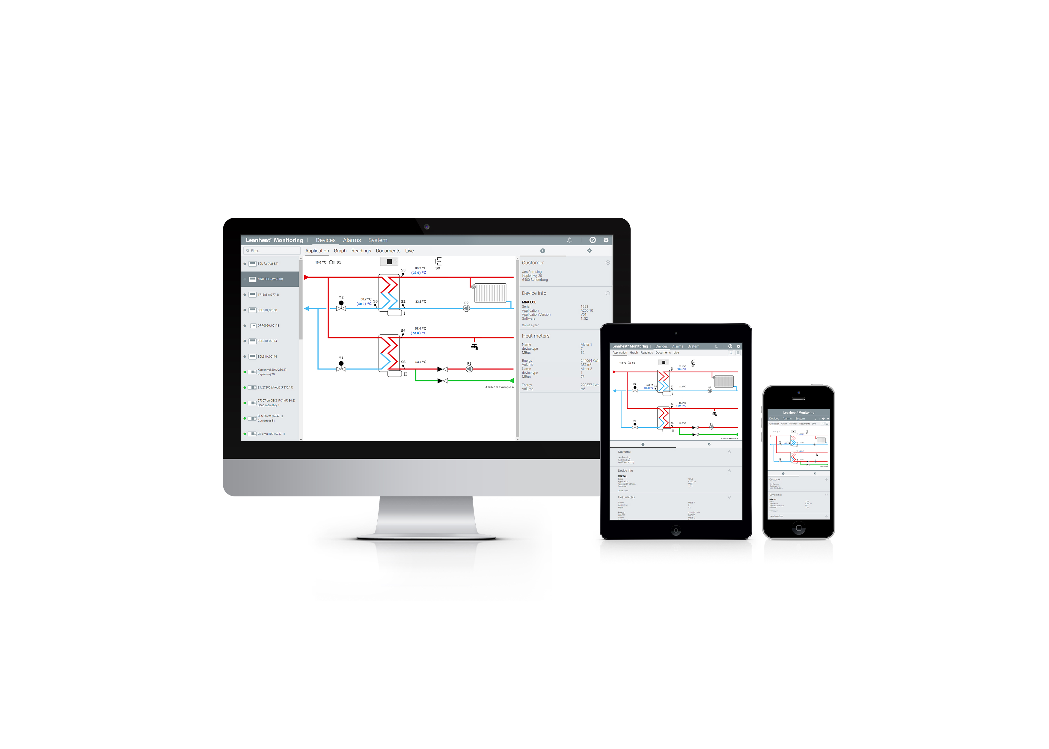 Leanheat® Monitor til den elektroniske regulator ECL Comfort 310 er et brugervenligt værktøj til at styre fjernvarmesystemer. Leanheat® Monitor gør det muligt at ensrette service, idriftsætning og vedligeholdelse – direkte fra din pc, tablet eller telefon.