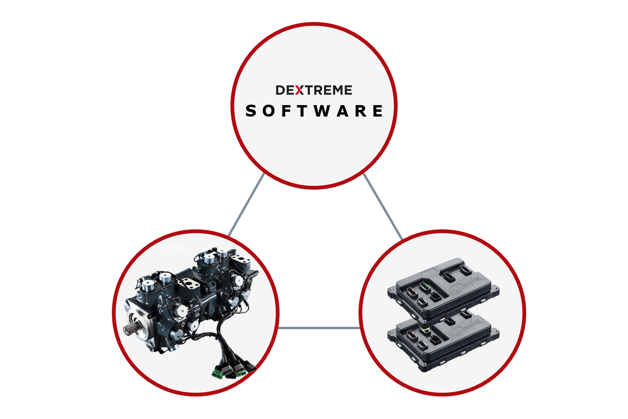 Die neuen Dextreme-Systeme von Danfoss steigern die Effizienz eines Baggers um 15 %, mit einer klaren Zielvorgabe von 50 %. Das Herzstück des Systems sind die digitale Verdrängerpumpe und ein spezieller Regler, der die Kolben einzeln aktiviert und nur jene verwendet, die zur Erfüllung des Leistungsbedarfs erforderlich sind. Dies ermöglicht eine deutliche Drehzahlsenkung des Motors, wodurch Kraftstoffverbrauch und Emissionen reduziert werden. Alternativ kann Dextreme eine bis zu 25 % höhere Produktivität erzielen, indem es die volle Drehzahlkapazität des Motors nutzt.