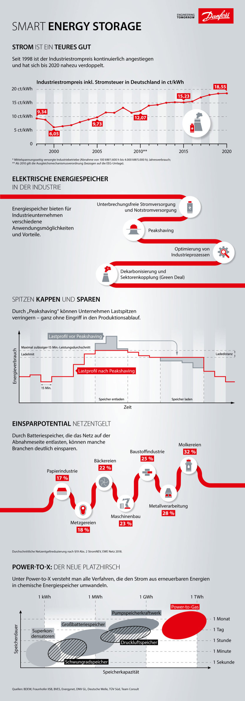 Wahlig gibt jedoch zu bedenken: „Viele Verantwortliche in den Unternehmen glauben, es sei ausreichend, einen Speicher aufzustellen. Dabei sind Intelligenz und Steuerung der Systeme entscheidend“, erklärt er. Dazu müssen sogenannte Micro Grids aufgebaut werden. „Wir müssen eine Gleichstrom-Welt samt Speicher mit dem gängigen Wechselstromnetz verbinden, damit Energie eingespeist und bezogen werden kann. Die Fabrik wird dadurch zum Stromverbraucher und Energielieferant zugleich.“ Wichtiger Baustein in Mirco Grids ist daher Umrichtertechnologie. Wie Danfoss und Rolls-Royce Solutions gemeinsam Hybridisierungsprojekte in der Industrie umsetzen, erfahren Sie im Podcastgespräch.