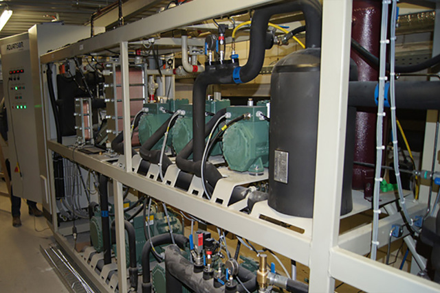 Eine Kälteanlage dieser Art muss den strengsten Sicherheitsvorschriften entsprechen. Zum Beispiel mussten im Maschinen- und im Kühlraum Gaswarnfühler montiert werden, die bei Erstickungsgefahr einen Alarm auslösen. Ein weiterer Aspekt, den der Betreiber bei der Planung berücksichtigen musste, war der hohe Betriebsüberdruck der Anlage, denn CO2 kondensiert bei einem höheren Druck als herkömmliche Kältemittel. Die Rohrleitungen und Komponenten müssen daher einem Druck von bis zu 120 bar standhalten können. Herkömmliche Kupferrohre sind für einen solchen Druck nicht zugelassen. Daher erforderte die Anlage auf der Hochdruckseite druckbeständige Rohre aus Edelstahl.