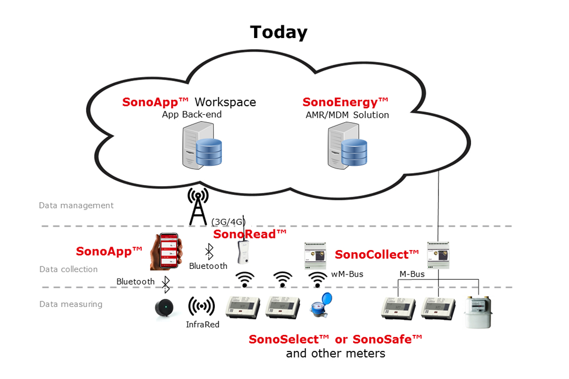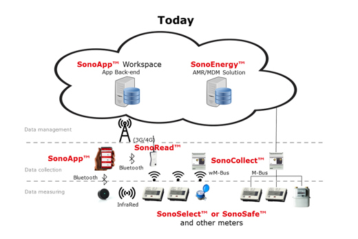 With the global ambitions to reduce energy consumption within heating, cooling and hot water systems, the amount of energy meters installed in residential as well as non-residential buildings increases annually. To collect data about the consumption measured by each meter, nowadays a good but slightly complicated process is used. The wish for improvement has existed for years. The Heat Meters such as the SonoSelect™ store the data. The data of all meters installed in the same building or system is collected by data collectors such as Danfoss SonoCollect™. This data is then send for processing to an energy management system such as SonoEnergy™ via the internet.