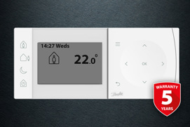 Programmable room thermostat TPOneWith Danfoss TPOne™, intelligent heating control is now easier than ever before. TPOne™ is ideal for virtually any domestic heating application with a boiler system, from single to multi-family houses.