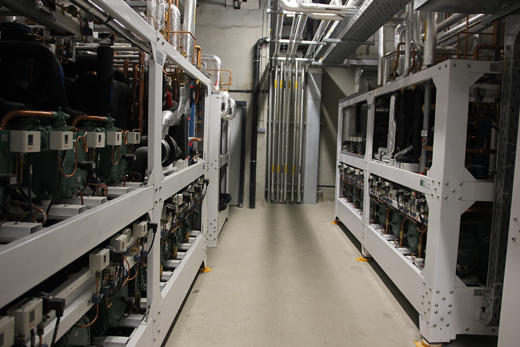 With a mix of 191 low, medium, and dual-mode temperature display cabinets on the sales floor, plus 51 low and medium temperature cold rooms, and 29 climate chambers to support a vast range of different food sections, the new store needed a refrigeration solution that could deliver up to 1 MW of cooling and heating capacity.