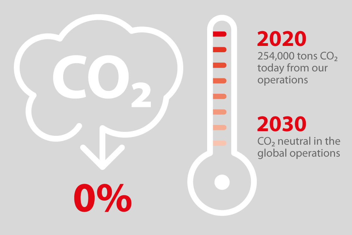 Joining the decade of action, we have set ourselves new ambitious targets to become CO₂ neutral by latest 2030 with a focus on energy efficiency first. We are now working on plans to transition the company’s energy consumption to renewable sources and its current company car fleet to electric vehicles by latest 2030, given that the necessary infrastructure will be in place.