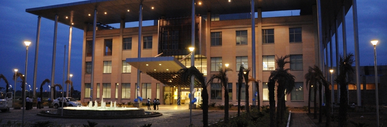 The IGBC Platinum-rated campus boasts lush green lawns, a widespread
