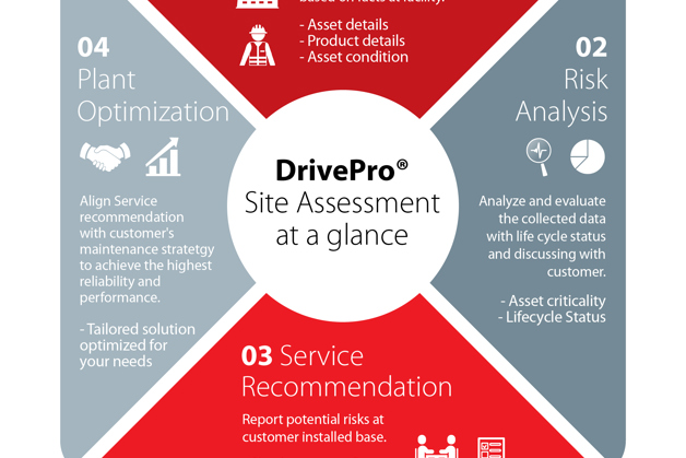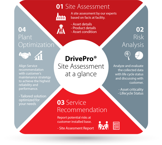 With a DrivePro® Site Assessment, our well trained experts will assess your facility's VFD installed base and review your assets based on visual conditions, and evaluate the life-cycle stage of your individual assets. Based on this assessment you will receive a tailored service solution which will enable you to optimize up-time and reduce maintenance costs.