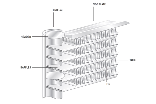 The basic design of a heat exchanger is crucial in determining its performance. Traditional air-cooled condensers, called round tube and plate fin (RTPF), have been made with round copper tubes surrounded by aluminum plate fins—the aluminum fins increase the surface area to improve heat transfer efficiency.