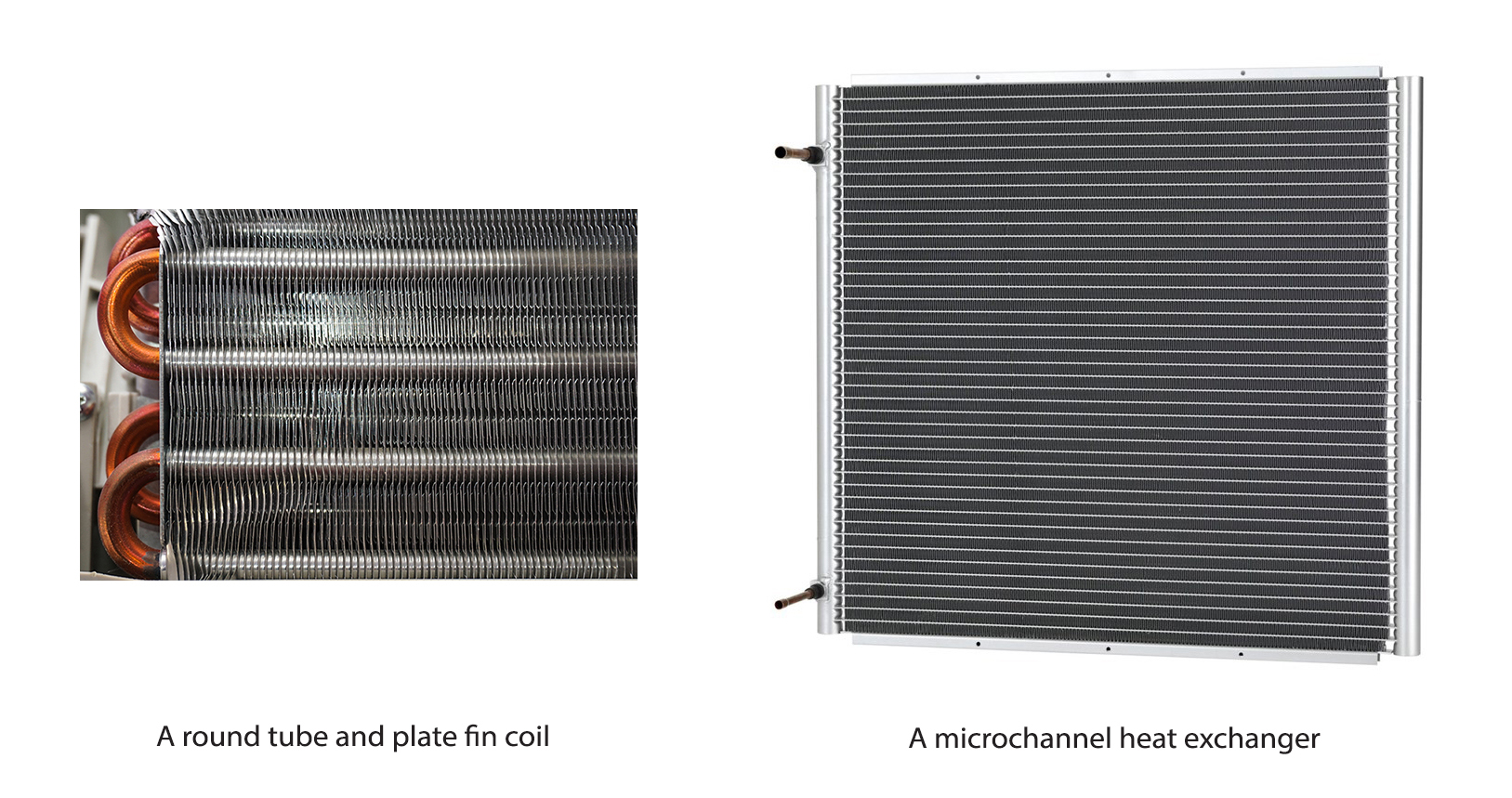 Traditionally, the most predominant air-cooled heat exchanger has been a round tube made from copper surrounded by aluminum plate fins. The aluminum fins increase the surface area to improve the efficiency of heat transfer. This kind of heat exchanger design is known as a round tube and plate fin (RTPF) coil. However, an alternative to the RTPFs, the microchannel heat exchanger (MCHE), is rapidly growing in popularity.