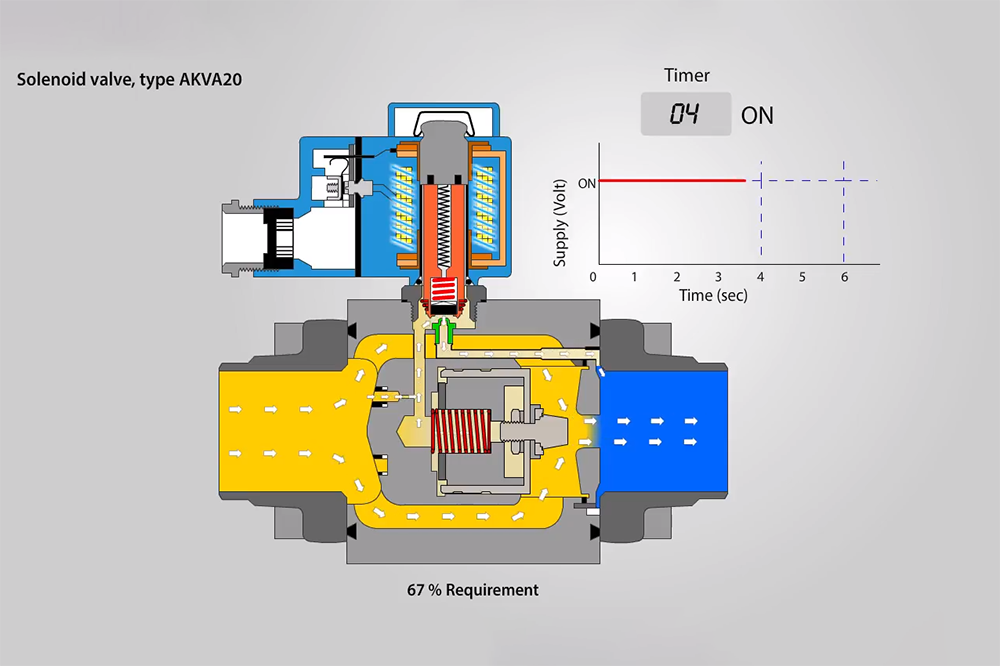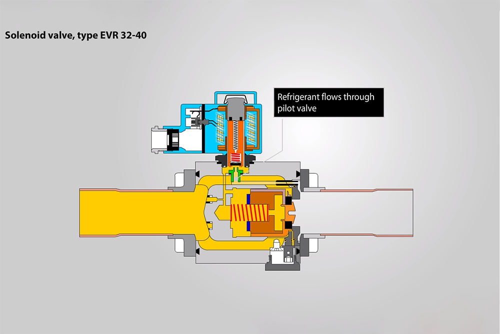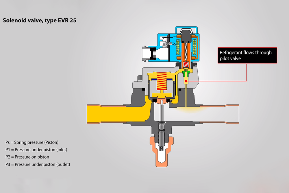 Ammonia, pilot operated, open and close valve dependent on capacity.