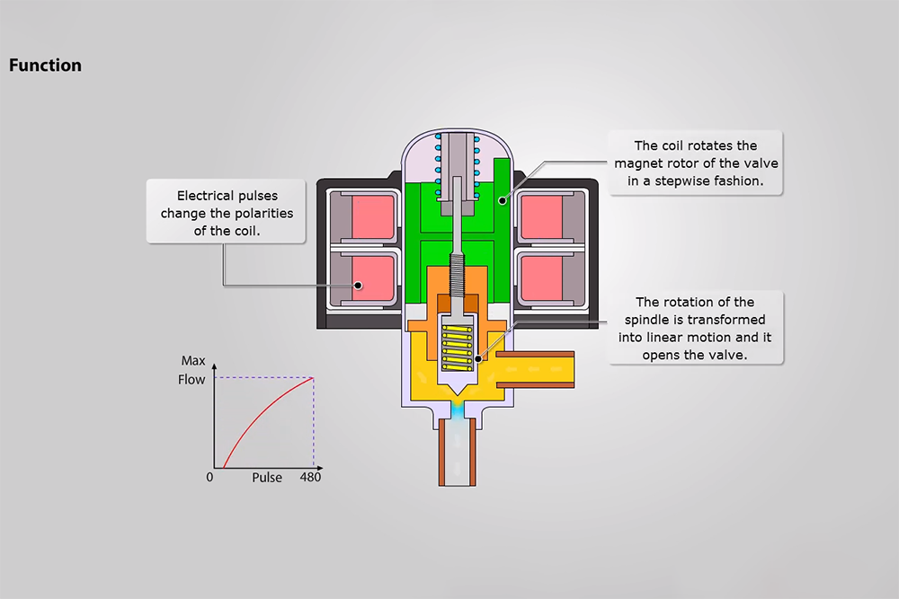 Compact, stepper motor electronic expansion valve for fluorinated refrigerants.