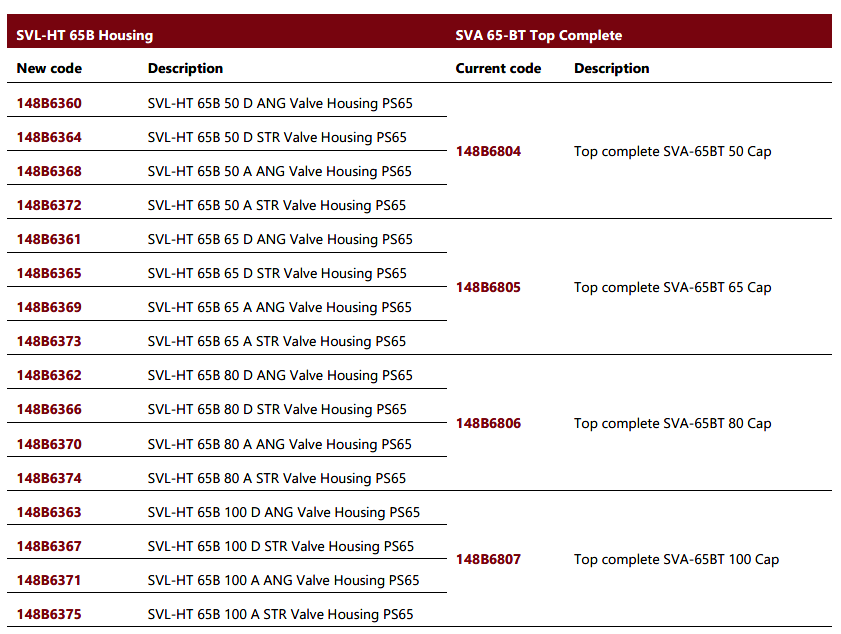 Pricing for the new housings will remain consistent with that of the current SVL 65 bar housings (sizes DN 50 – DN 100). New sales codes for the SVL HT 65B housings are scheduled for release in March 2026.