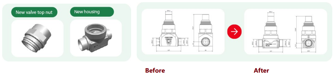 - The new forged housing will incorporate combi welding connections, combining a DIN 25 butt weld with a 1 1/8" SA brazing connection