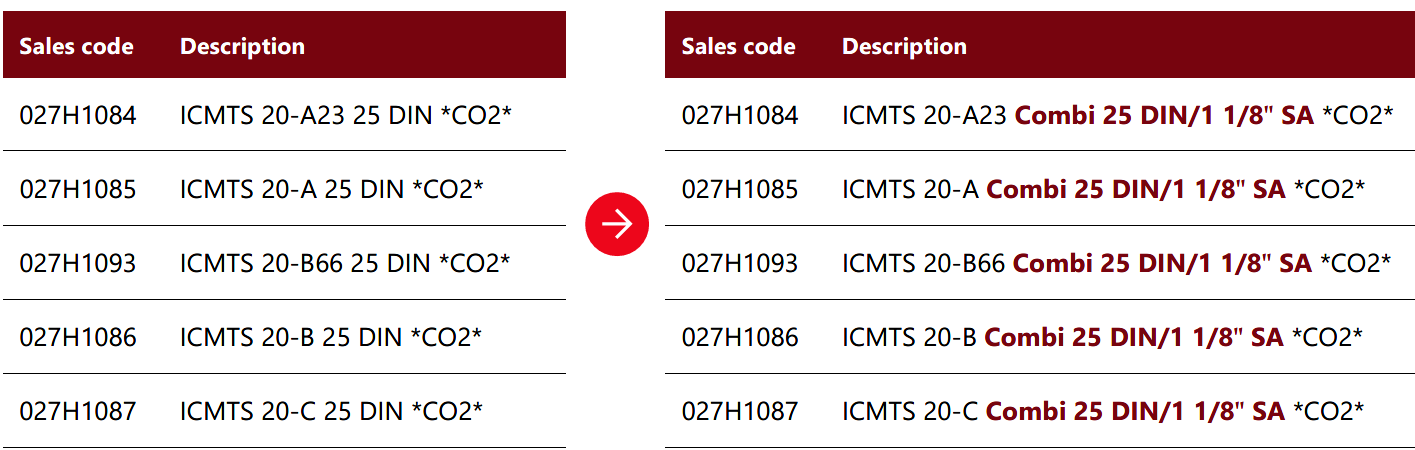 The code numbers for the housing will remain unchanged with this modification, while the description will be updated to reflect the new combi connections.