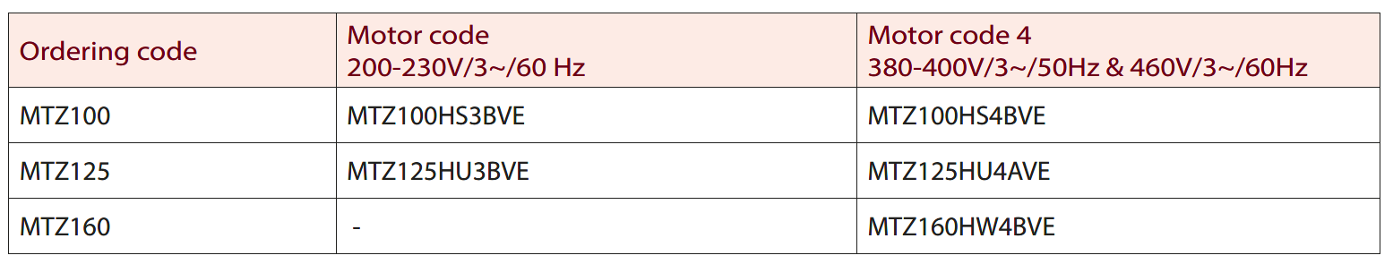 The MTZ models listed below are qualified or use with refrigerants R454A/C and R455A, classified in efrigerant Group 1. R454A has a GWP of 238, while R454C and R455A have a GWP below 150. These refrigerants are classified as A2L, indicting low flammabiliy properties. Please refer to European regulations (EN378, EN60335) and EPA rulings in the US for safe use. Outside of Europe and the USA, consult local regulations.