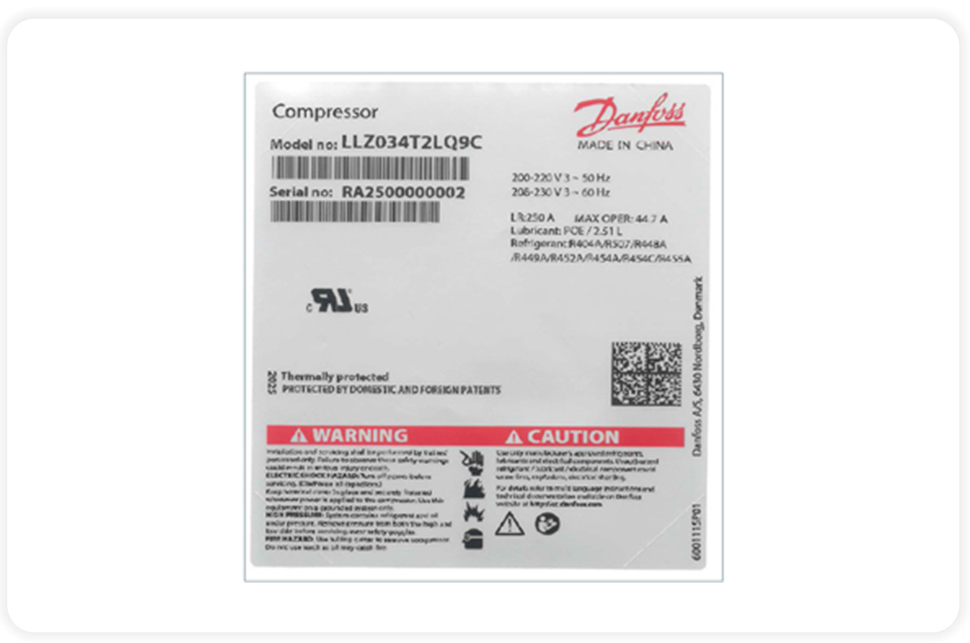 The ordering process remains unchanged; compressor codes will stay the same. Compressor nameplates will indicate Refrigerant Group 1, which includes hazardous fluids like flammableefrigerants according to PED Classifiction. Compressors will also feature a flammable efrigerant logo for clear identifiction and safety compliance.
