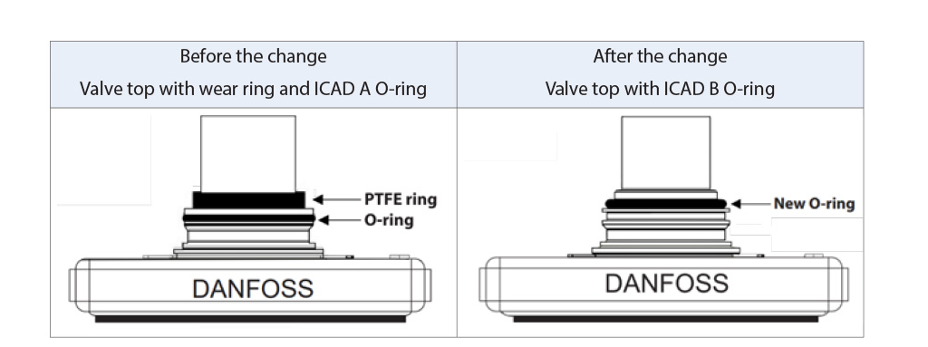 Due to introduction of new ICAD B actuator and phase-out of ICAD A version, it was decided to implement new O-ring for ICAD B version in all ICM, ICMTS valves, CVE pilot valves and ICM modules in ICF valve stations.