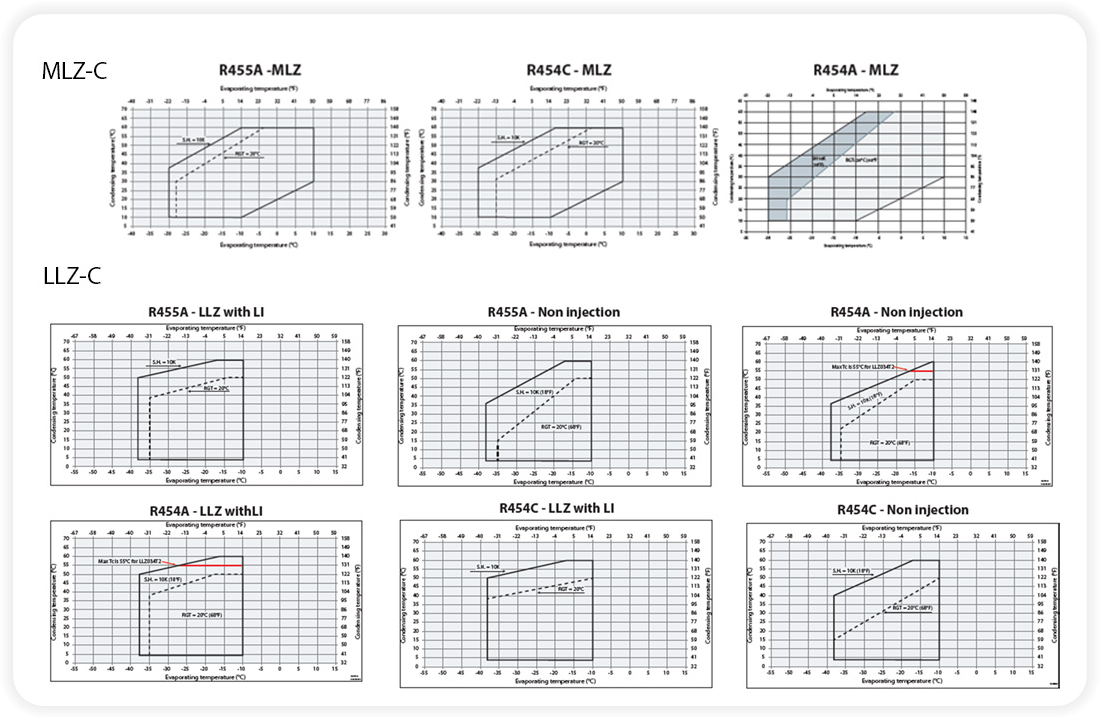 - New models released for MLZ/LLZ evolution C with refrigerant R454A, R455A, R455C