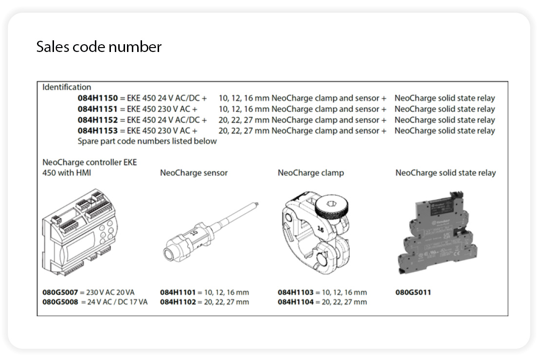 - NeoCharge Sensor-Clamp: Used for attaching the sensor to the evaporator tube