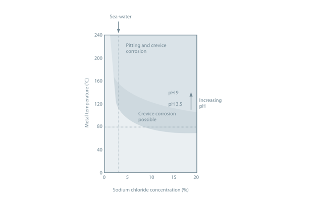 While most metals are subject to increased corrosion in the crevices formed between themselves and other metals, titanium is exceptionally resistant to this type of corrosion at temperatures as high as 80°C.