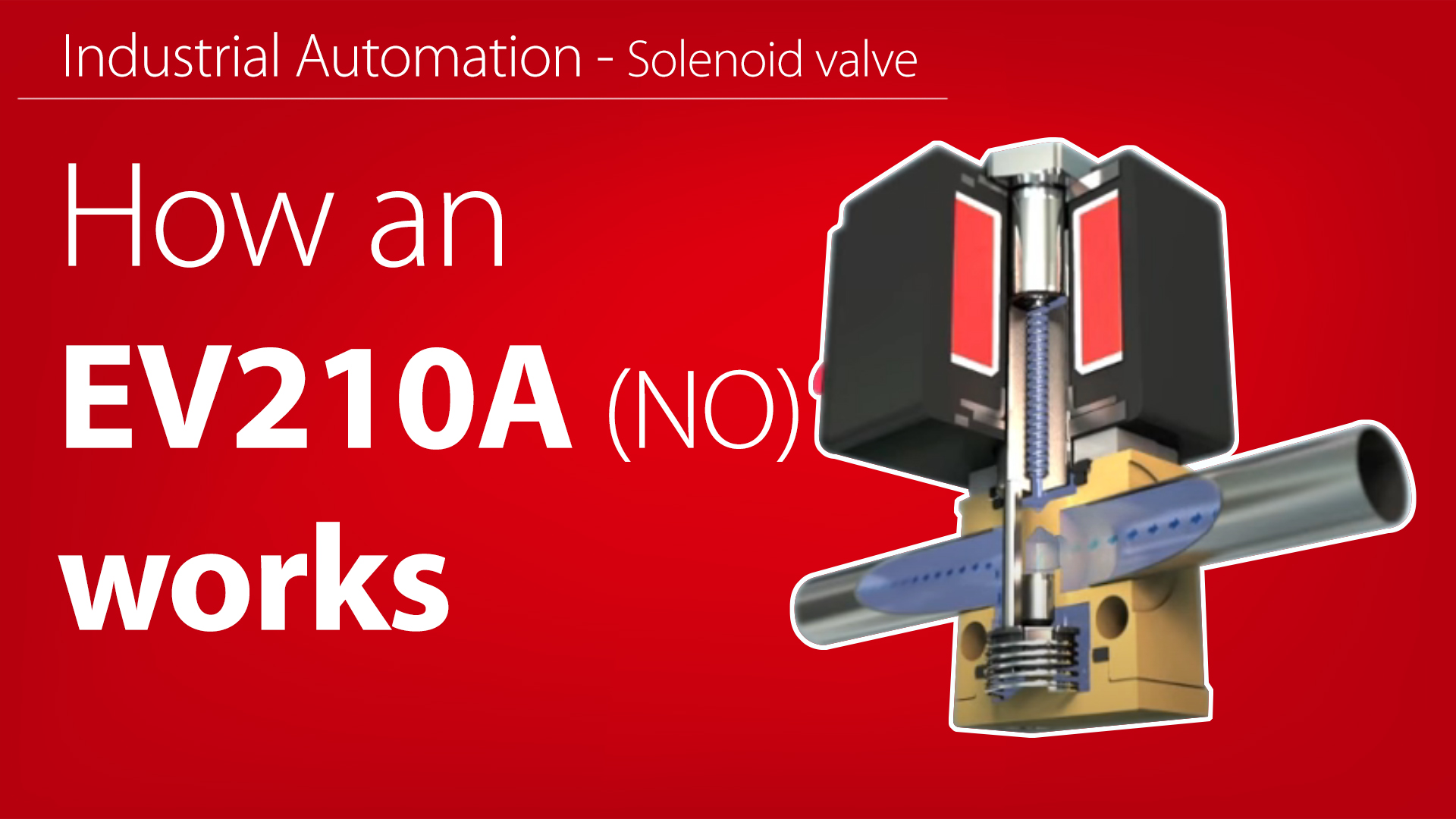 The EV310A range of small, direct-operated 3/2-way solenoid valves is designed for industrial applications, for example as a pilot valve. It works in neutral media such as water, oil and compressed air. This short working animation shows a cutaway view of the solenoid valve in action.
