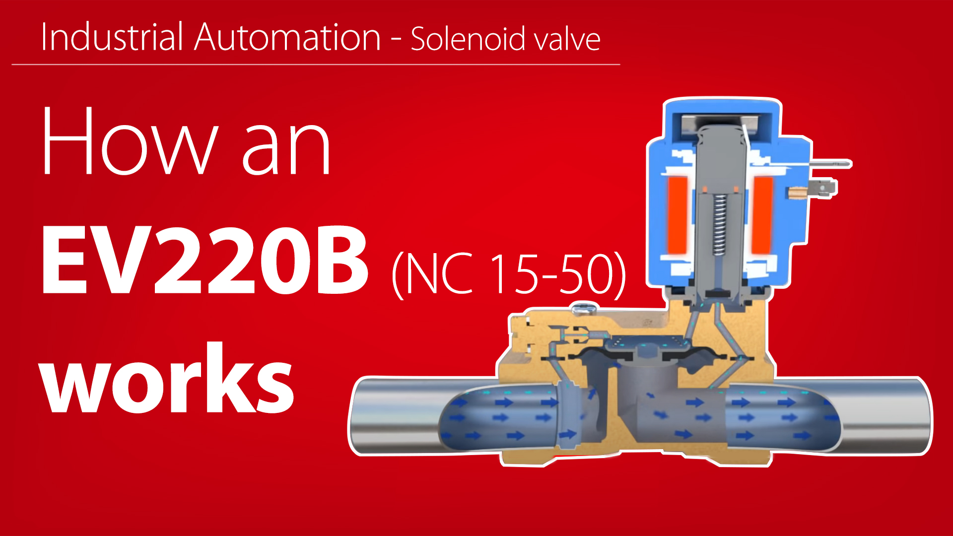EV220B 15-50 and EV220BW 40–50 are a program of universal, indirect servo-operated 2/2-way solenoid valves, with a built-in pilot filter as standard. This animation shows the internal workings of the EV220B 15–50 NC.