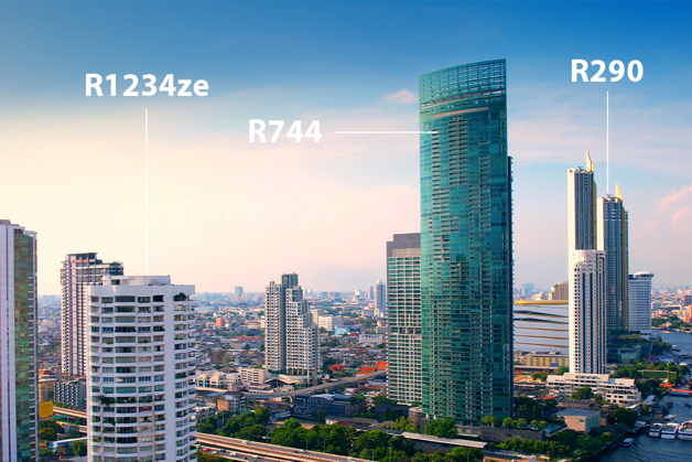 Danfoss prioritizes sustainable solutions combining high energy efficiency and low-GWP refrigerants, both natural and synthetic. With refrigeration and air conditioning using 15% of global electricity, energy efficiency is a critical aspect. Danfoss invests in low-GWP refrigerants, developing products that are practical, safe and energy efficient, such as compressors, heat exchangers, and control components. Danfoss strikes a balance between affordability, safety, and the environment to pioneer new developments and technology.