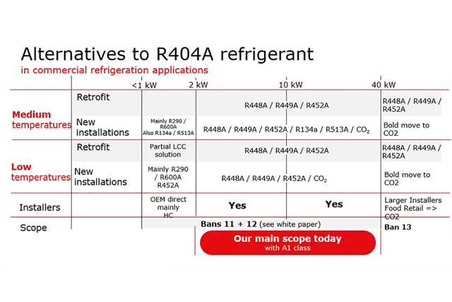 In Europe R404A and R507A refrigerants are already banned in many new refrigeration equipment and for service only recycled refrigerants can be used. Here is a list of replies to the many questions we have received related to the best refrigerants to replace R404A / R507A in refrigeration applications, to the impact on the system performance, on the components and their availability, and to the best practices.