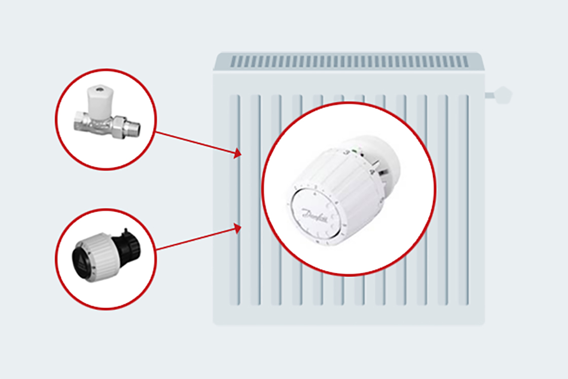 Danfoss radiator thermostats maintain constant desired room temperatures, individually room by room and help to reduce energy consumption. Mechanical thermostats or smartphone controlled thermostats - find them all here.
