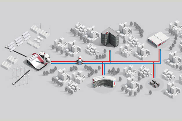 District Heating is not only compatible with renewable energy sources of today; With an established district heating network, future energy sources can also be utilized centrally and distributed to consumers through existing district heating pipes.