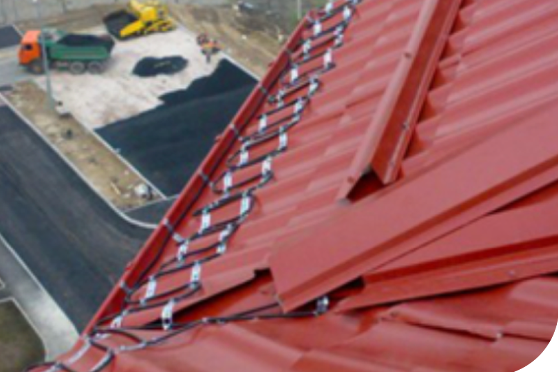 The ice and snow melting system for roofs and roof gutters can be applied for virtually any type of roof constructions to prevent meltwater accumulation in roof gutters and to reduce damage to constructions like frozen facades and roofs. The typical applications are roof constructions, roof gutters, downpipes, flat roofs and valley gutters.