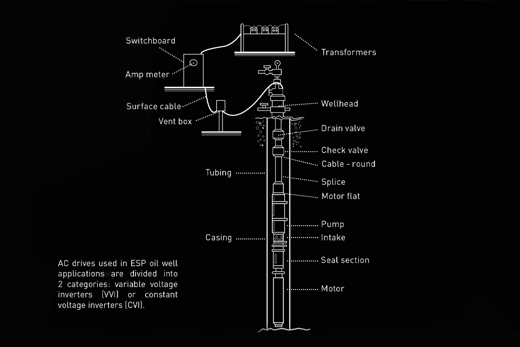 The Danfoss solution for controlling the operation of an ESP ensures that the motor will operate continuously in the case of power disturbances. Our ESP application includes a step up transformer in order to supply sufficient voltage to the motor.
