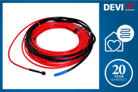 DEVIcomfort™DEVIcomfort™ is an extremely high quality, 360° fully screened, twin conductor cable with a tough red PVC outer sheath (non UV stable). Its round profile, robust construction and low height ensures a fast, simple and safe installation which is perfect for renovating existing floors. The cold lead has solid conductors ensuring fast installation.