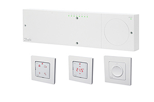 Advanced room controls for hydronic floor heating and other applications with actuators. Designed like a light switch to complement the interior.