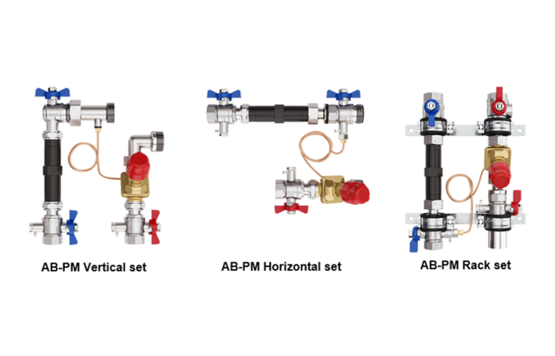 For residential applications, the Danfoss AB-PM connections sets are a compact and time saving solution for installing in front of each flat or manifold in hydronic heating systems. It is the best answer for a reliable system with proper distribution of flow and differential pressure both at full load and partial load conditions. Using the AB-PM connection sets, the installation is prepared for fast and easy heat meter installation just by removing the replacement piece. The dedicated design of the sets with ball valves for easy shutoff enables safe commissioning, servicing and maintenance of the manifold heating system.