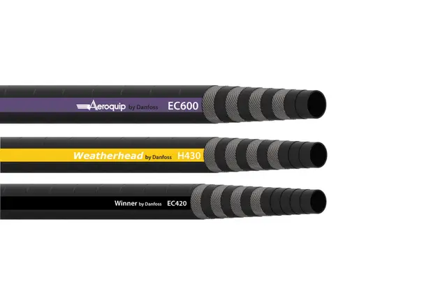 For applications requiring even higher pressure, Danfoss offers a range of four and six wire spiral high-pressure hoses. These hoses are built to provide exceptional performance that goes beyond industry standards. Our portfolio includes models designed for low- or high-temperature, high-abrasion, and suction applications, ensuring we have the perfect solution for your hydraulic needs. Our two-tier strategy allows customers to choose from premium Aeroquip and standard Winner brands, with our Americas premium brand, Weatherhead, offering top-of-the-line quality and performance. Trust Danfoss to provide the best four and six wire spiral high-pressure hoses for your hydraulic applications.