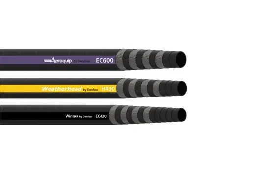 Aeroquip EC850 Dynamax four/six wire spiral hoseIntroducing the EC850 spiral hose, your ultimate solution for high-pressure demands. Engineered for the latest pump technologies, it undergoes rigorous testing up to 500 bar, boasting an exceptional 3 million impulse cycles in sizes -10 and -12—six times longer than the industry standard. With a burst pressure of 2,000 bar and 19% better bend radius, it offers superior performance and 8X higher abrasion resistance with Danfoss Dura-Tuff® cover. Compatible with Danfoss Global non-skive one-piece 1W fittings, this hose takes hydraulic systems to new heights, ideal for high-pressure applications, offering extended machine uptime and simplified assembly, all with better sealing and leak-free operations.