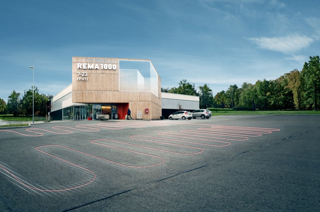 The surplus heat from the refrigeration system is used in under-floor heating, to heat the air going into the ventilation unit and to keep pavements snow and ice free during the cold Norwegian winters.