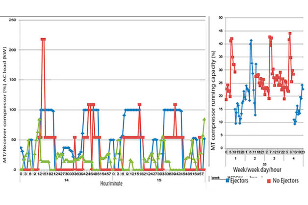 The compressor capacity steps must be adjusted to take full advantage of Ejectors