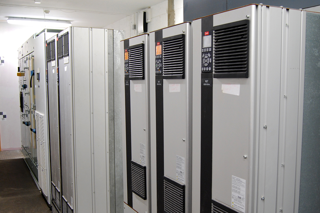 The largest of the new drives were required to control two high-pressure pumps with 600 kW motors operating at 690 V, which are fed from a custom 11 kV/690 V transformer. For these, 630 kW VLT® AQUA Drives were chosen.