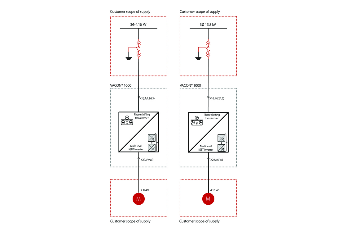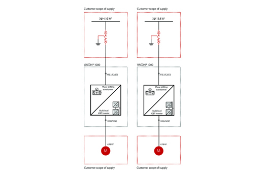 VACON® 1000 is a general-purpose drive suitable for a wide range of medium voltage applications. It is easy to integrate into the main control systems and adapts quickly to the specific needs of each situation. This MV drive offers high environmental resistance to operate under harsh conditions, with high temperature, dust and humidity inside an electrical room.