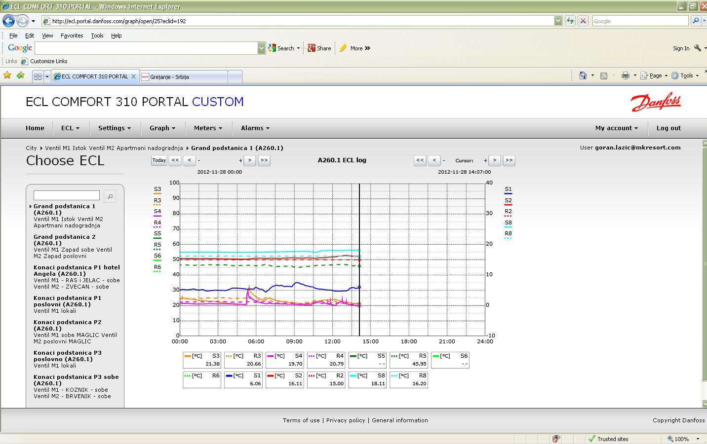 There are numerous advantages of the Portal ECL system. In addition to the monitoring and managing the system from one central point, all of the data and system parameters could be used to analyze and optimize energy consumption. Data Log option allows the storage of all system parameters (temperatures and data from heat meters) over a longer period of time, in order to make an analysis of the heating system operation. This is a precondition for the solutions that lead to the operation optimization. Another fundamental characteristics is the possibility to obtain the data about alarm conditions automatically, by e-mail, what is a precondition for the quick service response.