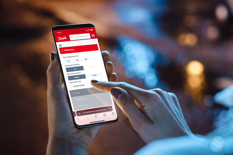 The Danfoss Heat Selector is easy to use on your phone or tablet wherever you are. A simple graphic interface guides you through the calculation steps. When you have a project just: