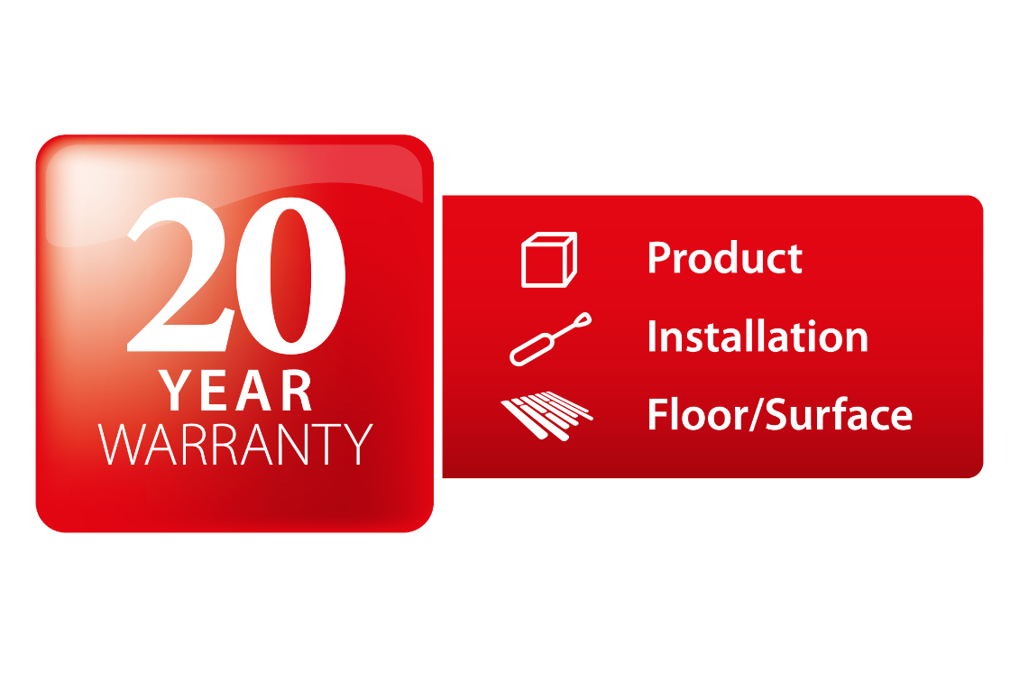 Danfoss Electric heating products include a comprehensive product warranty, which covers cable and mat replacement, as well as installation and materials costs – for up to 20 years.
