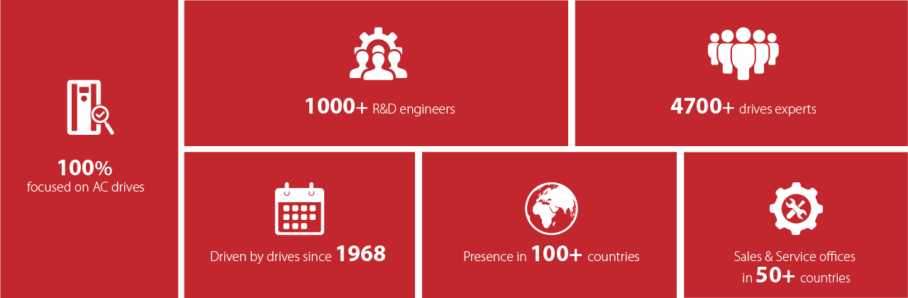 Vain kuuntelemalla vaatimuksiasi voimme auttaa sinua saavuttamaan tavoitteesi. Hyödyt vuosikymmenten kokemuksestamme ja yli 4 700 taajuusmuuttaja-asiantuntijamme osaamisesta. He tuntevat alasi läpikotaisin, tietävät taajuusmuuttajien merkityksen sovelluksessasi ja ovat erittäin päteviä luomaan parhaita ratkaisuja.