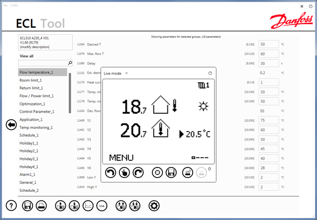 Yhteistä kaikille säätimille on niiden helppokäyttöisyys. ECL Comfort -sarjan edistyksellisemmät säätimet käyttävät USB-avainteknologiaa ja säätimien näytön kuvat helpottavat nopean yleiskatsauksen saamista järjestelmästä.