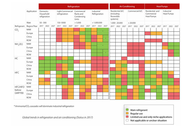 W ciągu ostatniej dekady społeczeństwo i przedstawiciele przemysłu na całym świecie omawiali możliwości zmniejszenia wpływu bezpośredniej emisji gazów cieplarnianych z układów chłodniczych i klimatyzacyjnych. Wraz z przyjęciem porozumienia z 2016 r. w sprawie wprowadzenia poprawki do Protokołu Montrealskiego dotyczącej stopniowego wycofywania HFC, działania zmierzają w kierunku stosowania czynników chłodniczych o niskim współczynniku GWP. Przed nami jeszcze dużo pracy, aby móc wdrożyć kolejne etapy stopniowego wycofywania HFC i bezpiecznie przejść na nowe czynniki chłodnicze o znacznie niższym współczynniku GWP. Obecnie wartości GWP powszechnie stosowanych czynników chłodniczych HFC, tj. R134a, R404A i R410A, wahają się między 1400 a 4000.
