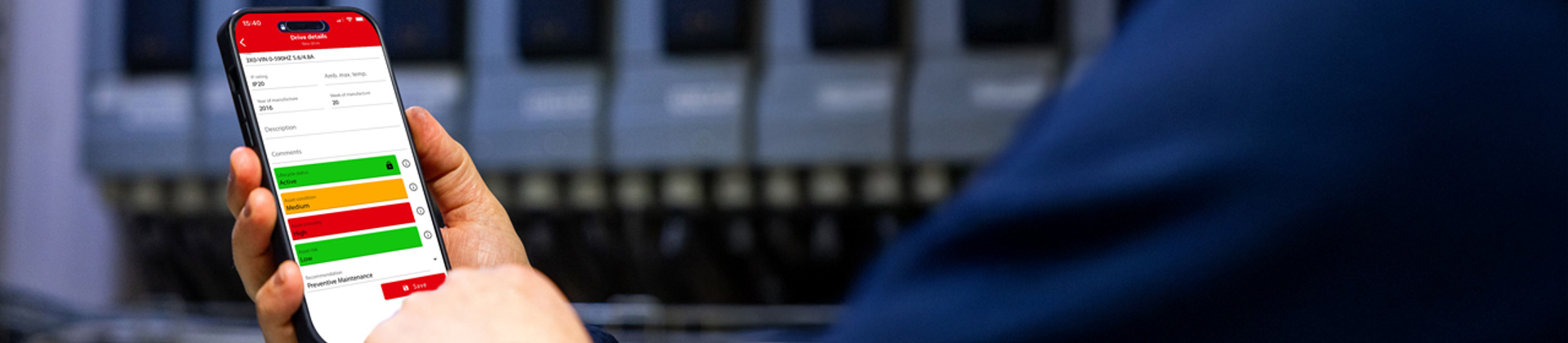 Ciesz się pełnym dostępem do naszego rozwiązania do zarządzania zasobami. Zbieraj w łatwy sposób urządzeniem mobilnym informacje o zainstalowanych napędach, aby opracowywać strategię konserwacji dostosowaną do Twoich potrzeb.