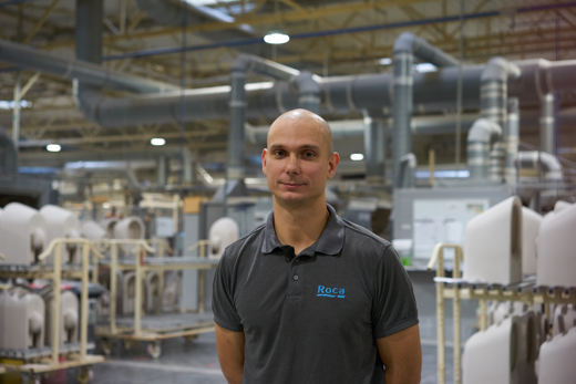 Produkty w Roca są wytwarzane z glinki ceramicznej, przygotowywanej w zakładzie. Proces zaczyna się od sypkich materiałów, które najpierw są mieszane ze sobą, a następnie – z wodą. Powstała w ten sposób masa ceramiczna jest formowana w produkty za pomocą dwóch metod: tradycyjnego zalewania form słupem cieczy lub maszynowego odlewania ciśnieniowego, przypominającego działanie wtryskarek.