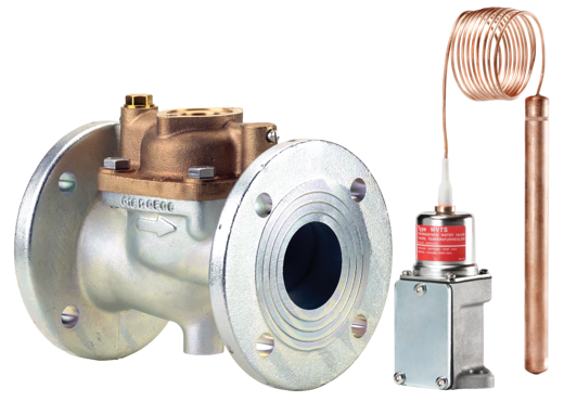 • WVTS DN32-DN100 z czujnikiem na kapilarze – do dużych przemysłowych instalacji chłodzących. Dla instalacji DN32-DN100 (przyłącza kołnierzowe) i Kv 12,5 – 125 m3/h